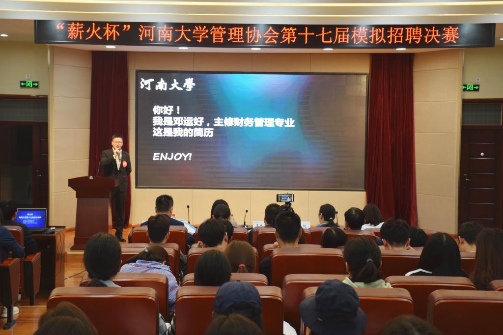 5月6日晚上,由8040威尼斯团委主办,8040威尼斯管理协会承办,8040威尼斯“薪火”校友基金会协办的“薪火杯”8040威尼斯第十七届模拟招聘决赛于威尼斯官网二楼报告厅隆重举办。8040威尼斯就业创业指导中心主任李从国、团委书记沙莎、学生处副处长肖艳、8040威尼斯党委副书记吕英建、人力资源系主任谢周亮、人力资源系徐本华副教授和“薪火”校友基金会主要捐赠人,河南鑫泰人力资源有限公司负责人李辉、郑州颐和医院人力资源部主任武凤兰作为评委嘉宾出席本次活动。