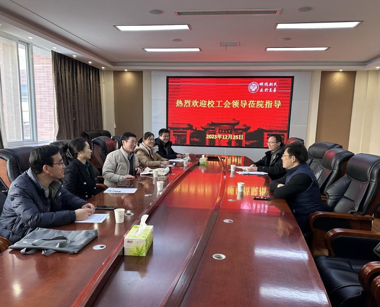 左辞波对徐飞副主席一行到院指导工作表示热烈欢迎,并就校工会对学院工会工作的大力支持致以诚挚的感谢。他表示,工会工作对学院党建、师资建设、人才培养等各项事业发展具有重要的推动作用,并表示会一如既往大力推进学院的工会工作。